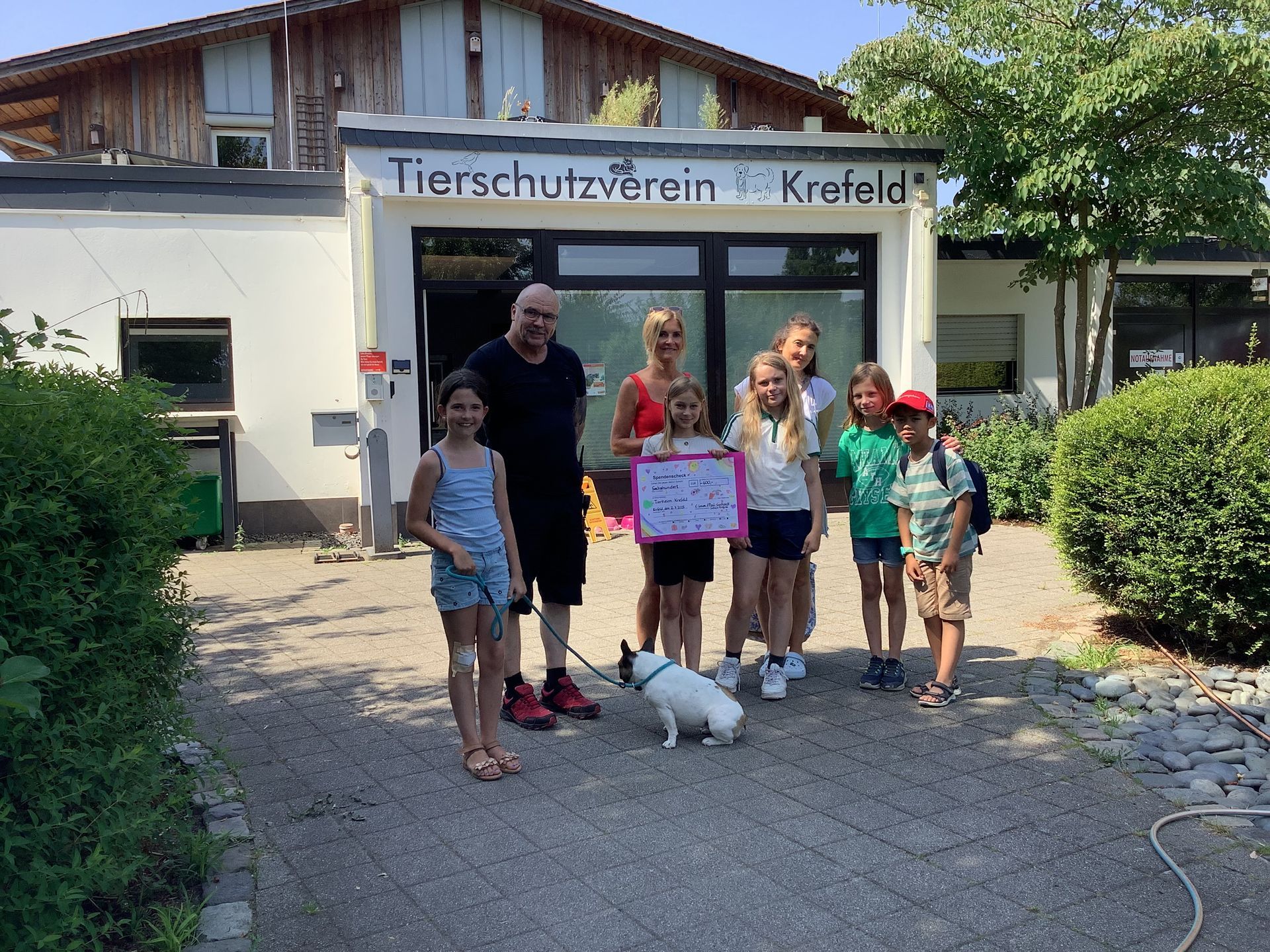 Die Kinder haben sich entschieden, dieses Mal den gesammelten Betrag von ca 500 Euro an das Tierheim in Krefeld zu spenden. Die Übergabe des Spendengeldes ging mit einem Besuch im Tierheim einher.